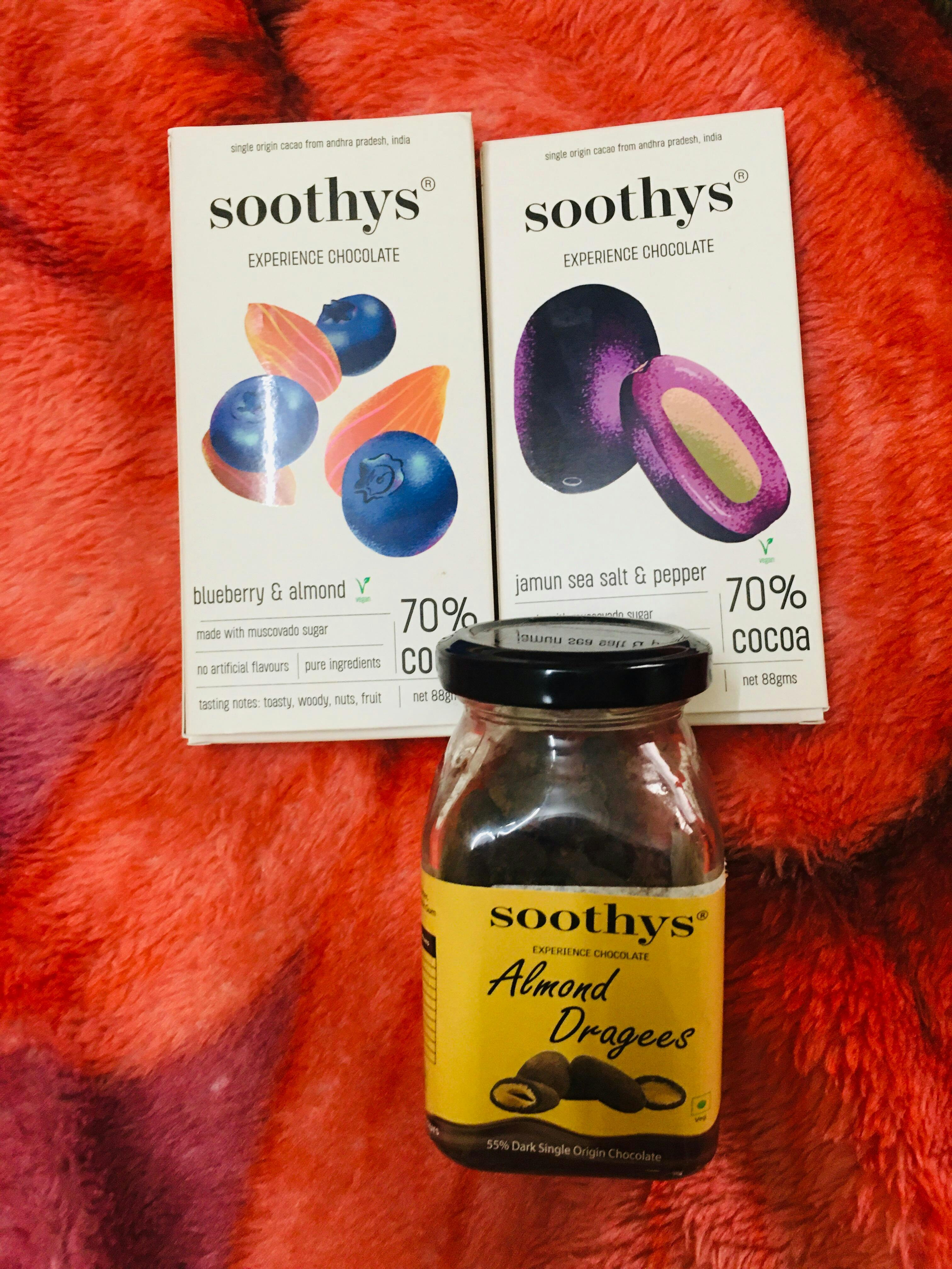 Made with single origin cocoa beans sourced from Andhra Pradesh India, Soothys brings the best of what India has to offer to the chocolate lovers. Our chocolate bars are handcrafted with care and love in a hygienic environment. All our chocolates are low in calories and have been sweetened with muscovado sugar which is a complex carb with slow sugar release into the body. With unique flavors of single origin cocoa beans and other natural ingredients, Soothys brings a unique chocolate experience for chocolate lovers.